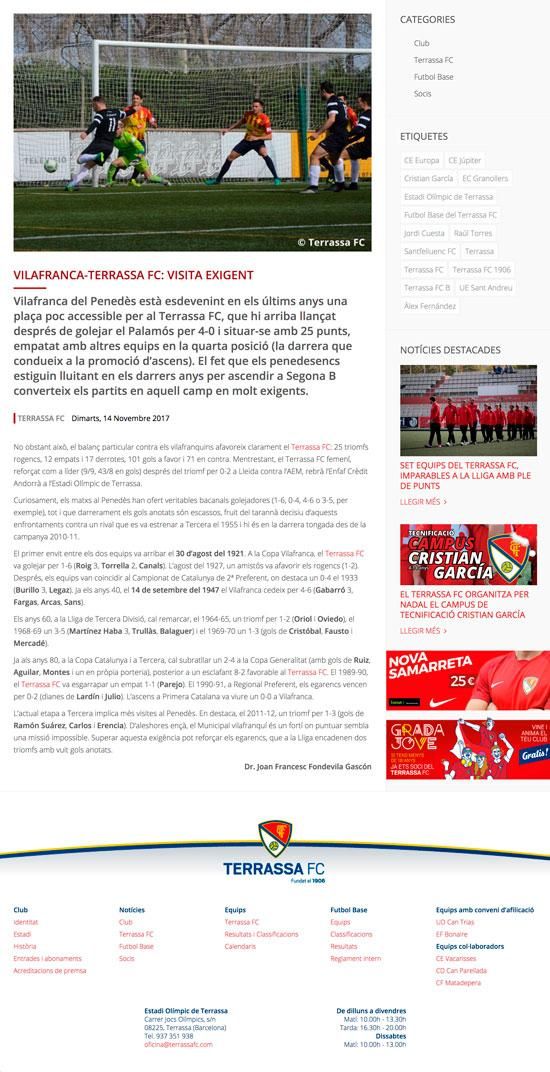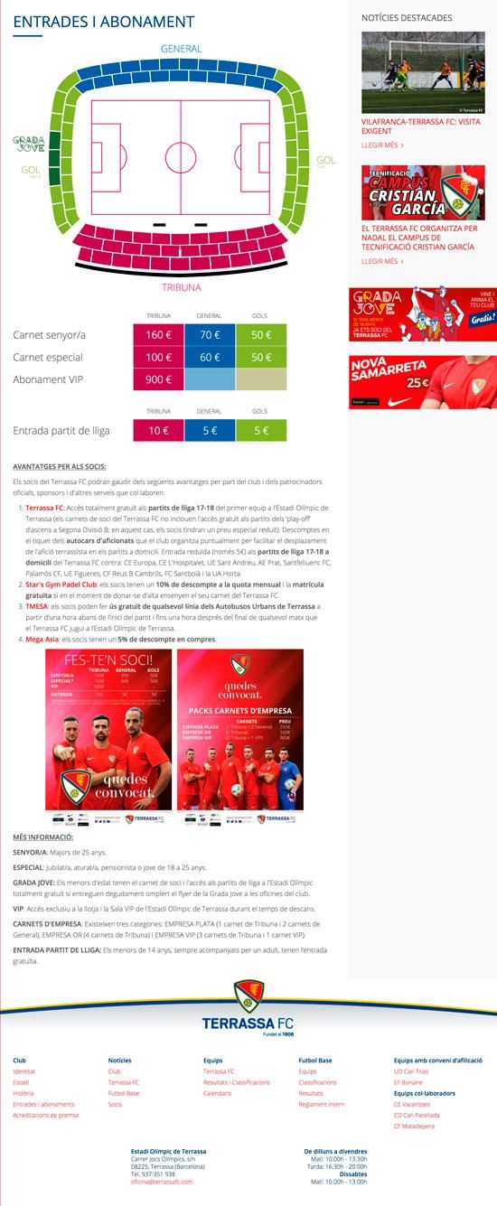 El club de futbol de la ciutat de Terrassa va apostar per fer un canvi en la seva imatge corporativa, i això anava acompanyat d’un nou web, que havia de reflectir aquest canvi.