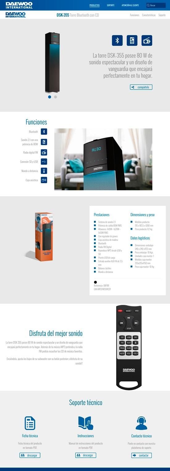 La web de Daewoo International tenía que ser un catálogo digital, donde poder ver todas las especificaciones de los productos, con el objetivo principal de dirigirse a los distribuidores. Unos de los objetivos principales también era disponer de un formulario específico para el soporte técnico, completo y fácil de comprender.