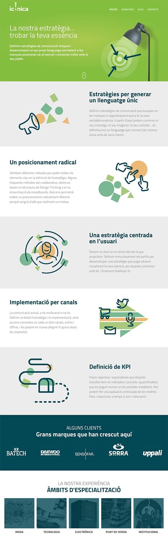 El estudio de diseño gráfico Icònica necesitaba una web moderna que le permitiera mostrar todos sus proyectos en un catálogo, así como su forma de trabajar, explicando el proceso que siguen desde que reciben un proyecto hasta que lo terminan.